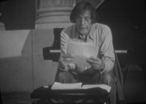 마지막 작품은 ‘존 케이지 – 빈 말 & 미라주 베르발’이다. 존 케이지 공연을 작가가 직접 촬영한 이 영상은 1986년 ‘비디오와 멀티미디어 / 김순기와 초청작가들’에서 공연했을 때 모습이다. 사실 존 케이즈는 동양철학에 밝았던 인물이다. 이날 공연에서 존 케이지는 헨리 데이빗 소로우의 글에서 단어와 문장을 임의로 선택해 주역에 맞춰 웅얼거리는 듯하기도 하고 노래를 부르기도 하는듯하게 읽었는데, 이번 전시회의 ‘빈 말’ 영상이 이때 모습이다.